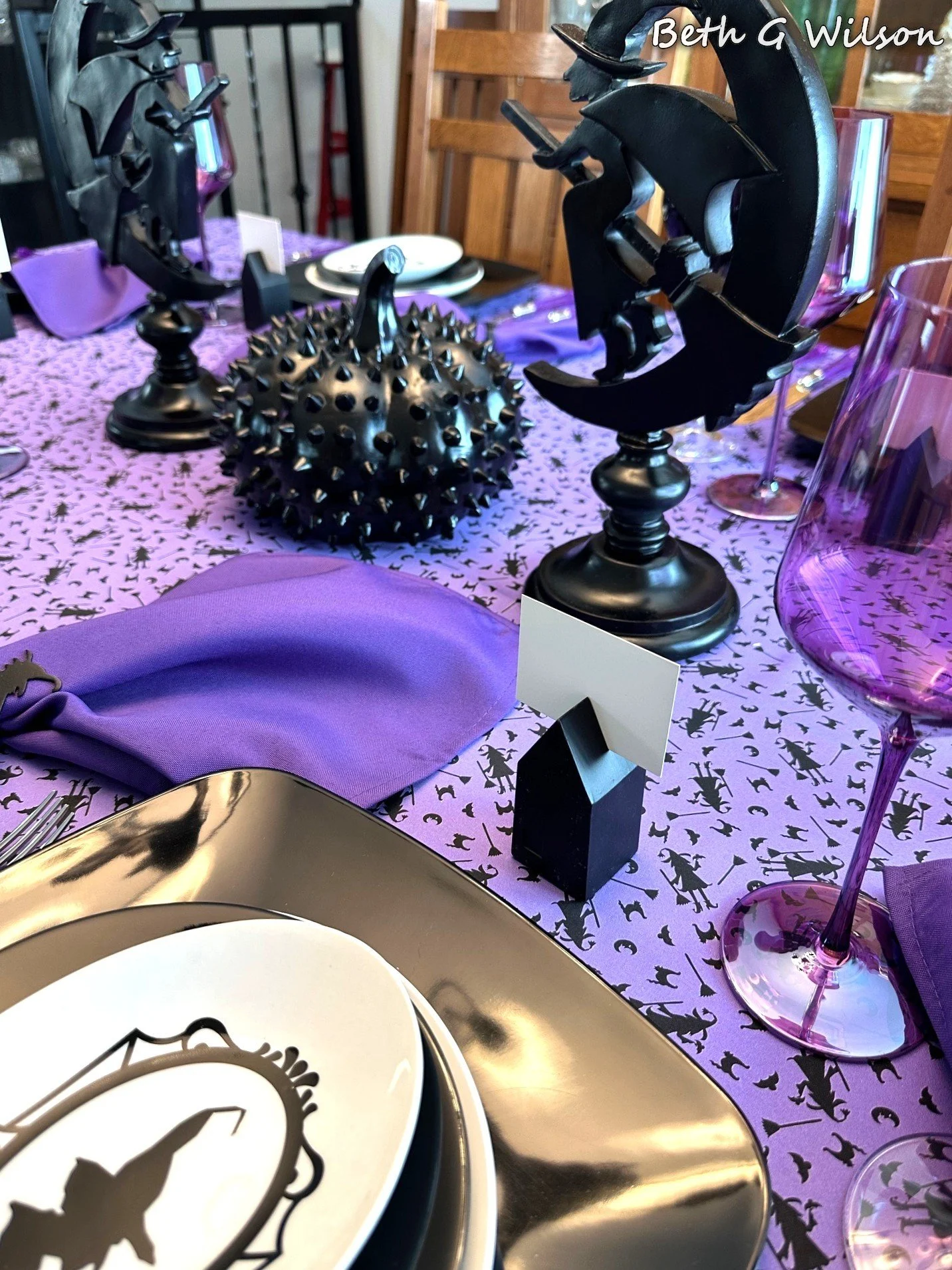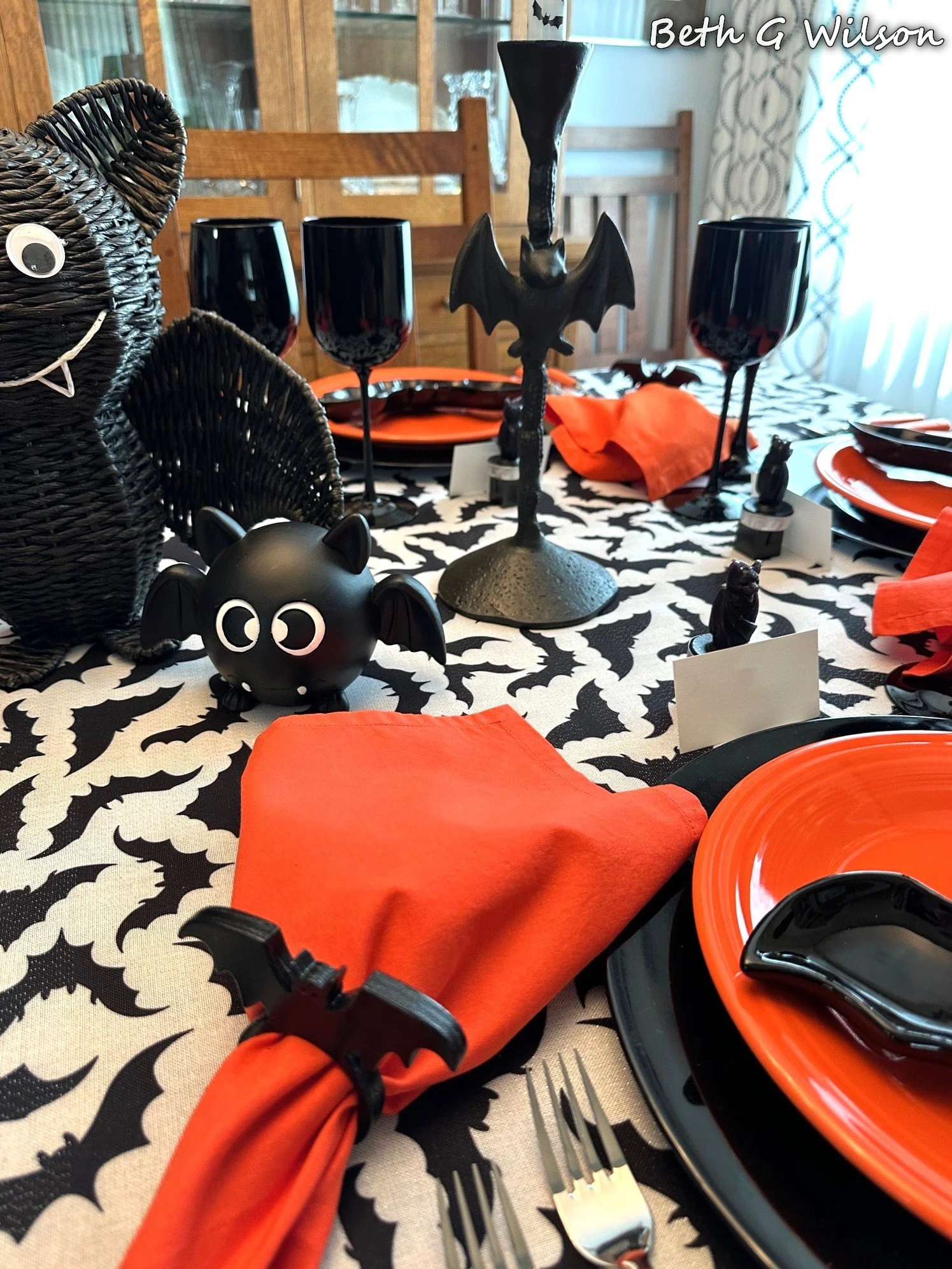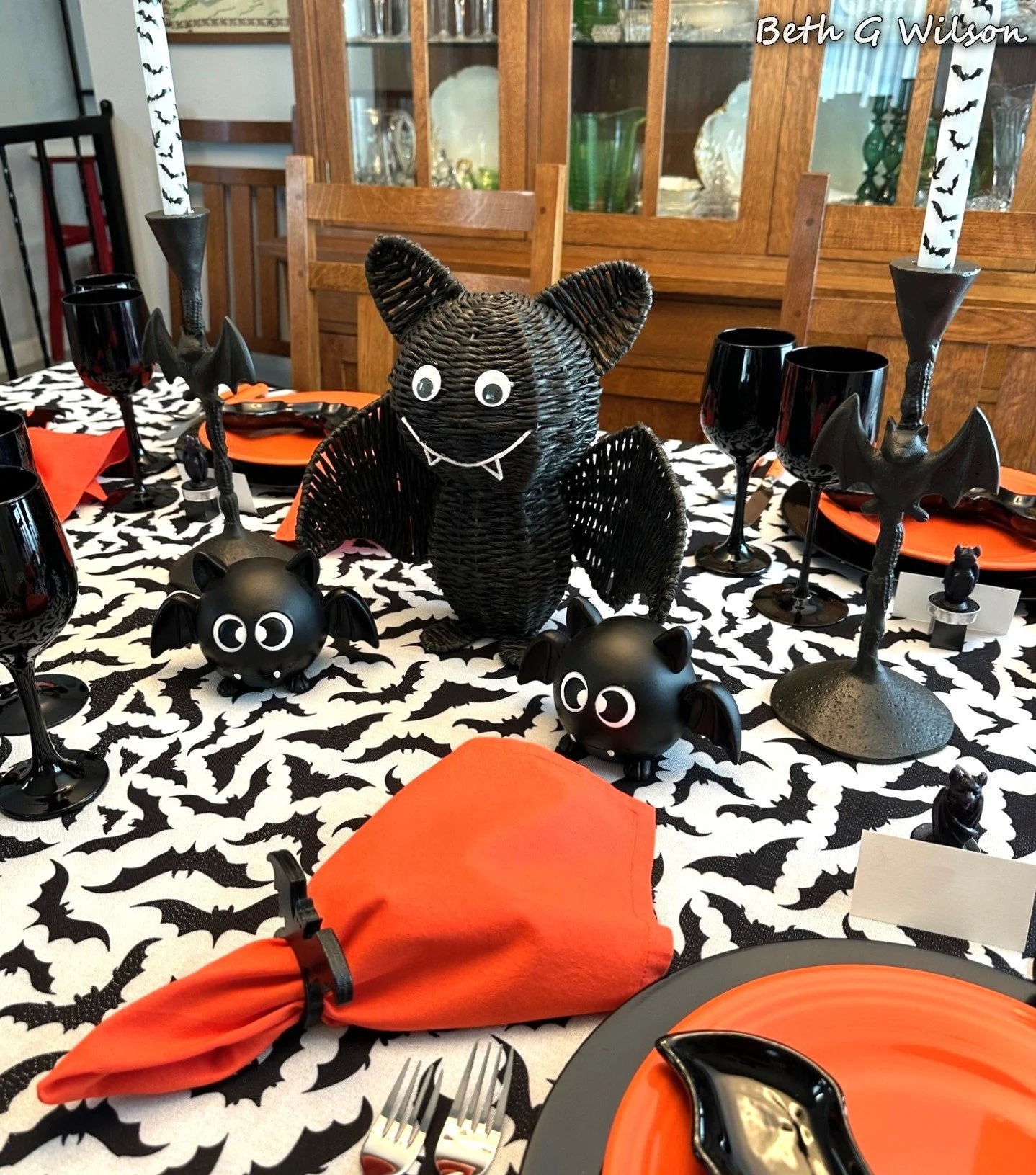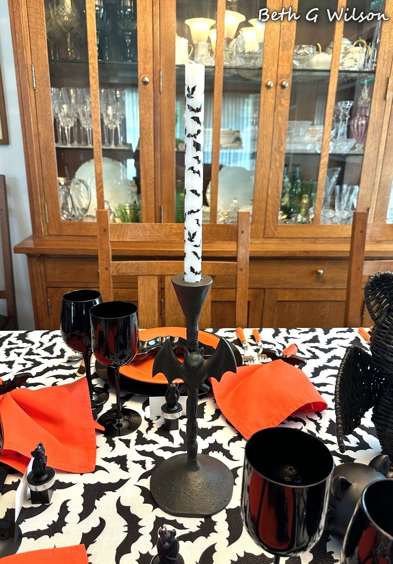 It’s interesting to compare this tablescape with my other Halloween Tablescapes. They show how changing some of the elements on a table can create a completely different tablescape.