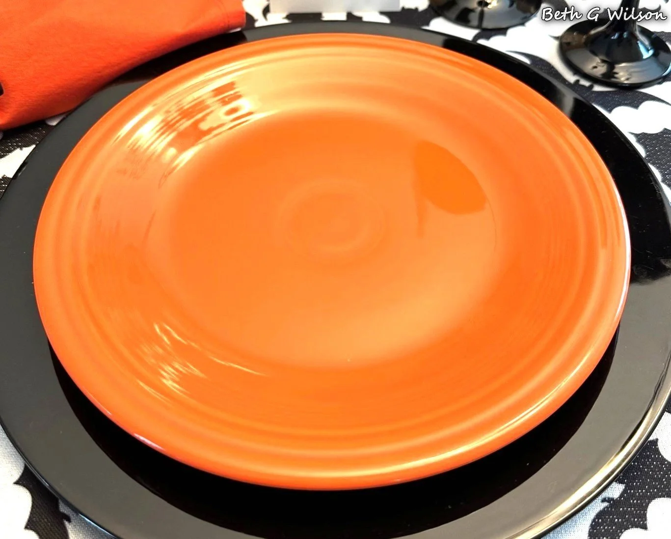 These pumpkin colored dinner plates came from Pier 1 right before our local store closed. The pattern was called Radius Pumpkin. I really like the lip design.