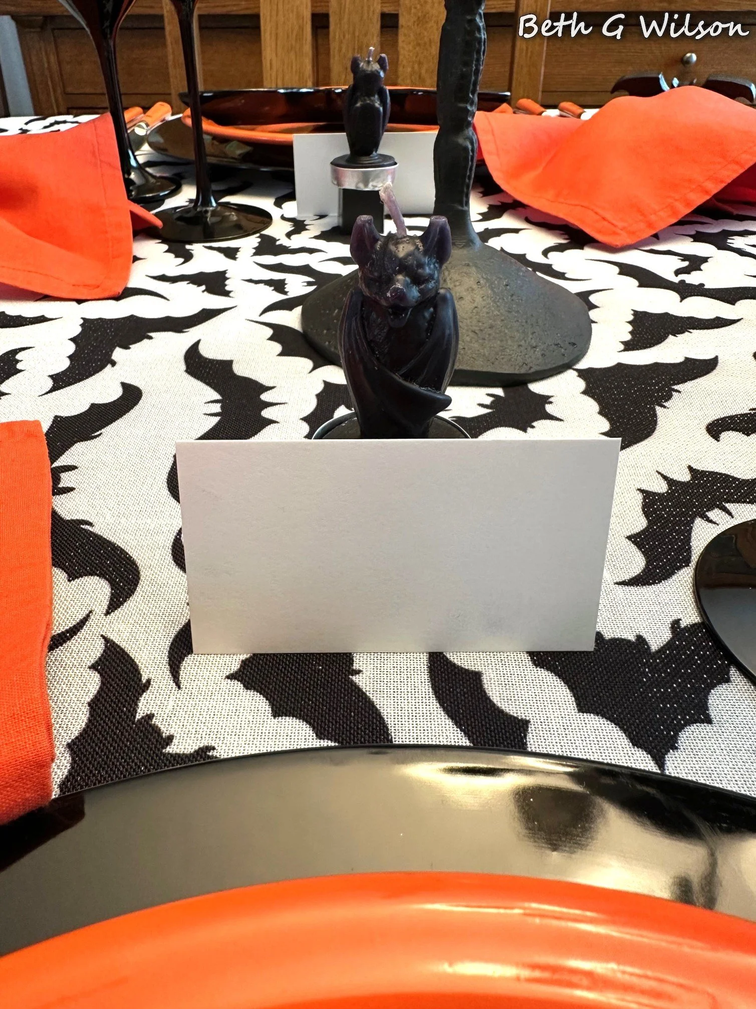 I have been thinking about a Crows themed Halloween tablescape for a couple of years now and I finally got it done this year. I create a new tablescape every week and post it on my blog. I have done over 25 different Halloween themed tablescapes and I keep looking for new themes. You can see all of my Halloween tablescapes and the other 250+ tablescapes that I have done here: https://www.whispersoftheheart.com/tablescapes When I saw this black tree branches on white tablecloth on Amazon several years ago I knew that it would be a good choice for Halloween tablescapes. The tablecloth was made by Fmfunctex. Sometimes I like to create tablescapes that are just two colors, I have done a few black and white ones. When I do this sometimes someone feels the need to make a comment saying that the tablescape would be better with a third color. If I had wanted to add another color, I would have. The stark black and white on this tablescape reminds me of Halloween and I like it for that reason.