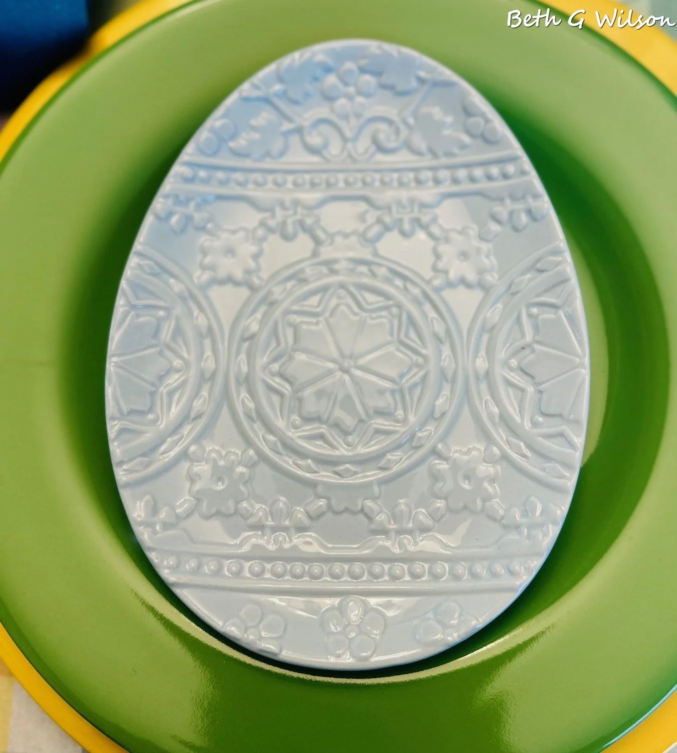 I found these small melamine blue butterfly bowls at Hobby Lobby a few years ago. They don’t have a maker’s mark on them.