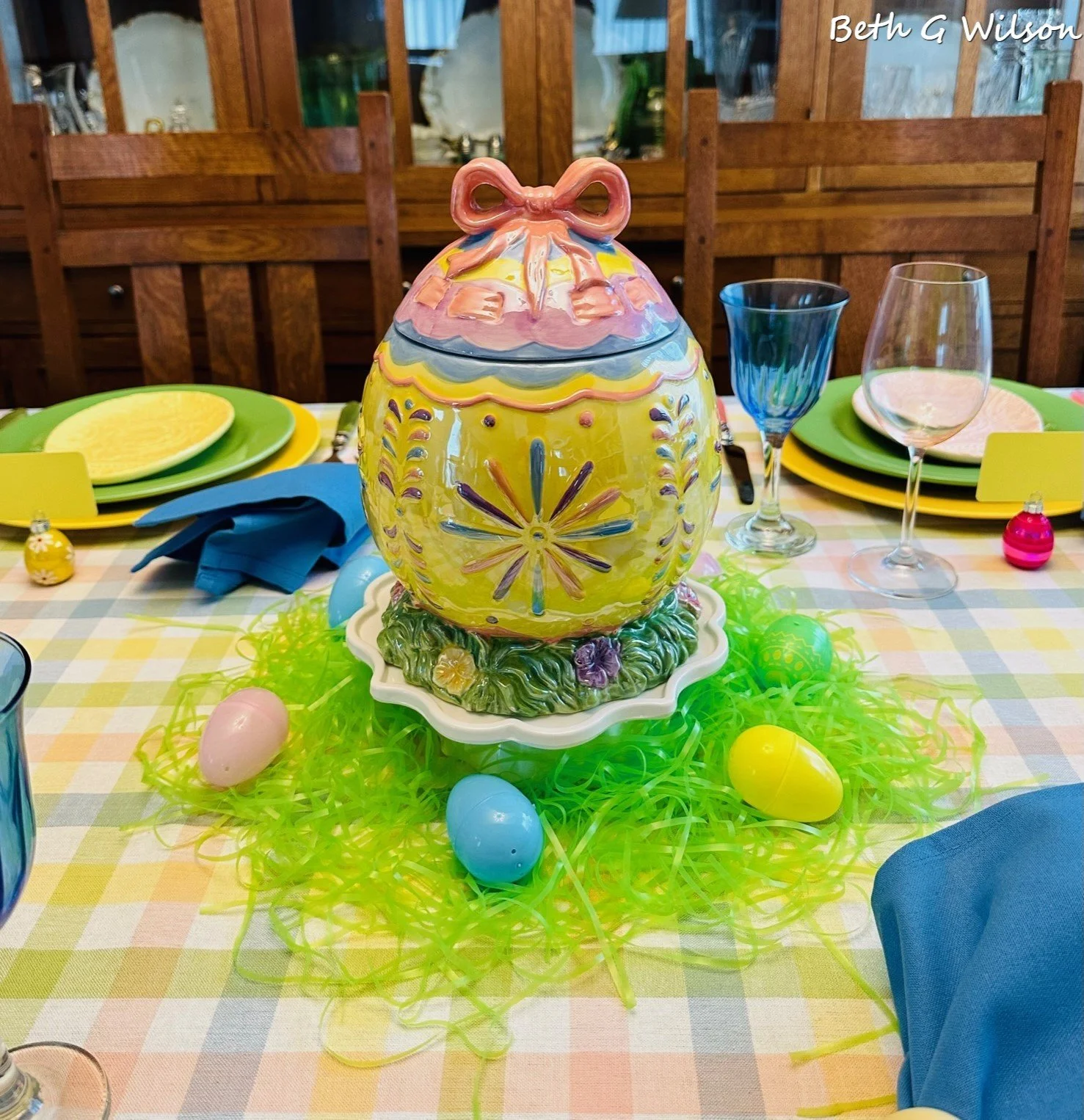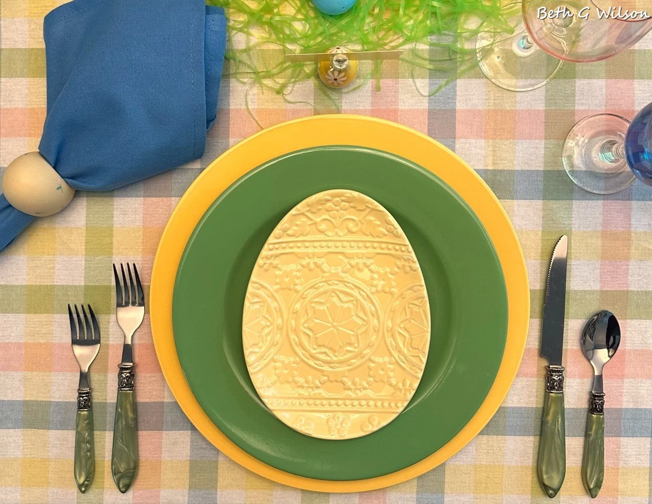 I found these faux boxwood placemats at Hobby Lobby a few years ago also. I love the spring green colors.