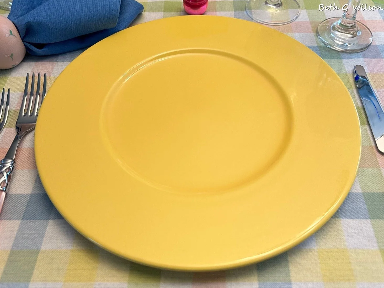 I posted a butterfly tablescape a few years ago but I decided to create a different one with a few of the same items. I found this butterfly tablecloth on Amazon a few years ago. The border is a weird green pea soup color but I knew it wouldn’t show on the tablescape.